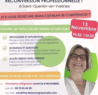 🎤 Intervenante : Sandrine DELORME - Accompagnatrice en Bilan de Compétences (ASENSILE) - Dirigeante de la société S2lorme Accompagnement